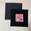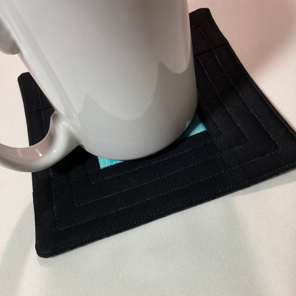 Reversible. Oversized quilted coaster measures approximately 6" square.