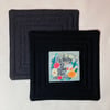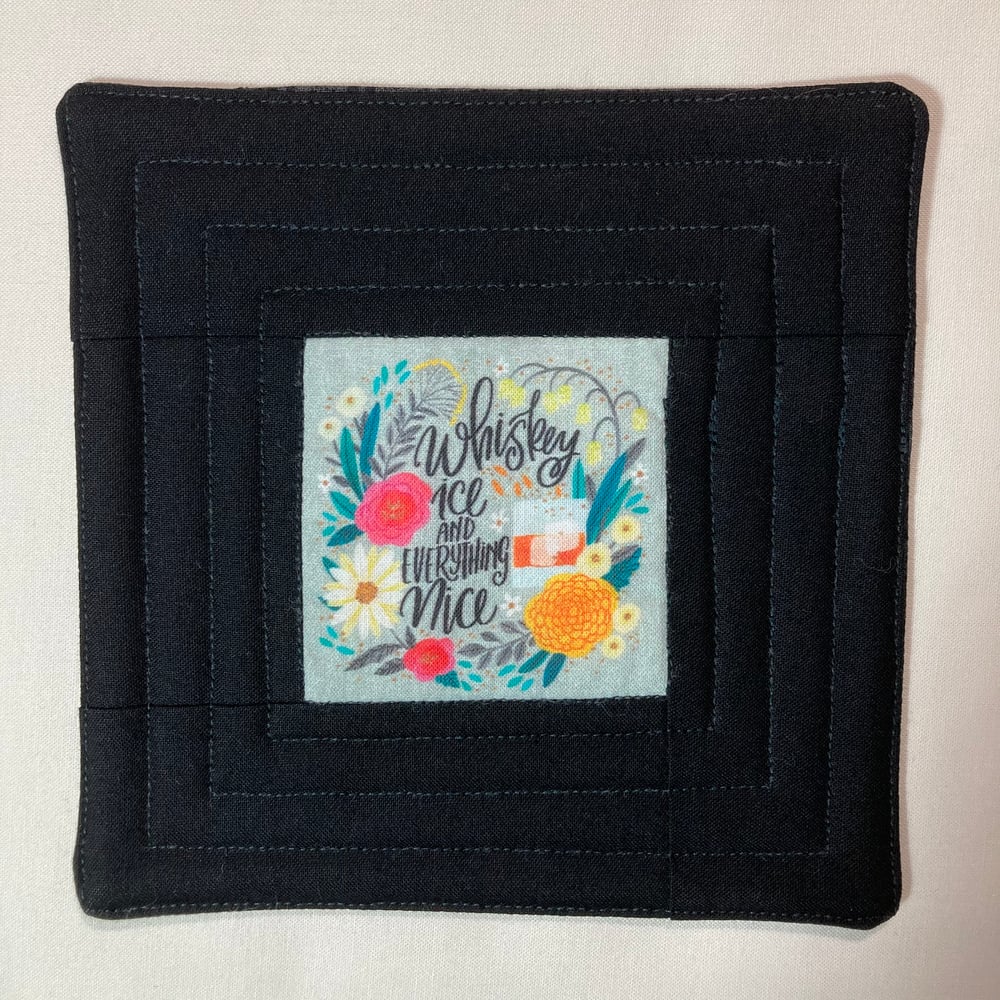 Reversible. Oversized quilted coaster measures approximately 6" square.